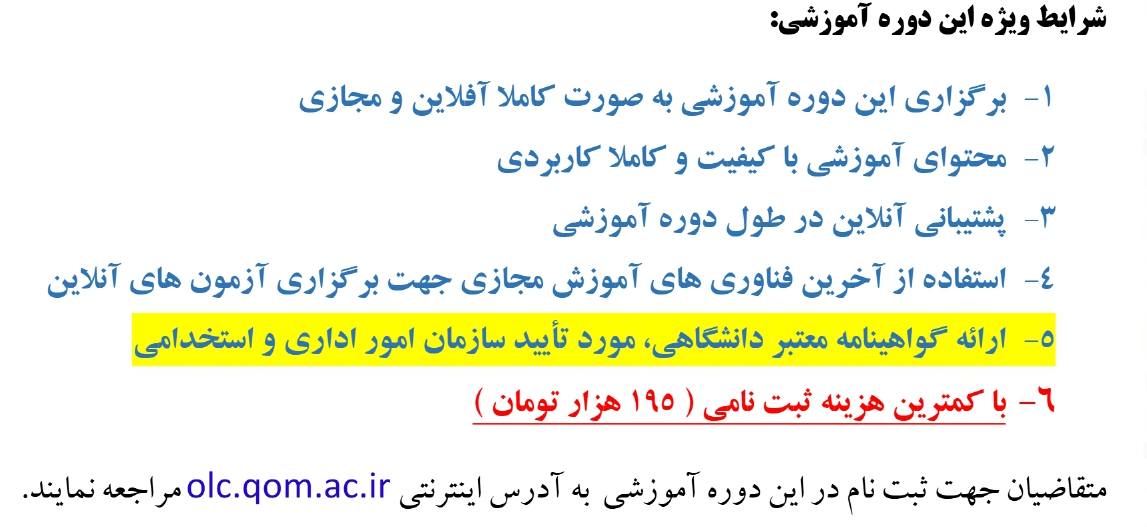 اطلاع رساني برگزاري مجازی و غیرحضوری دوره آموزشي مهارت هاي هفتگانه رايانه کار دانشگاه قم: